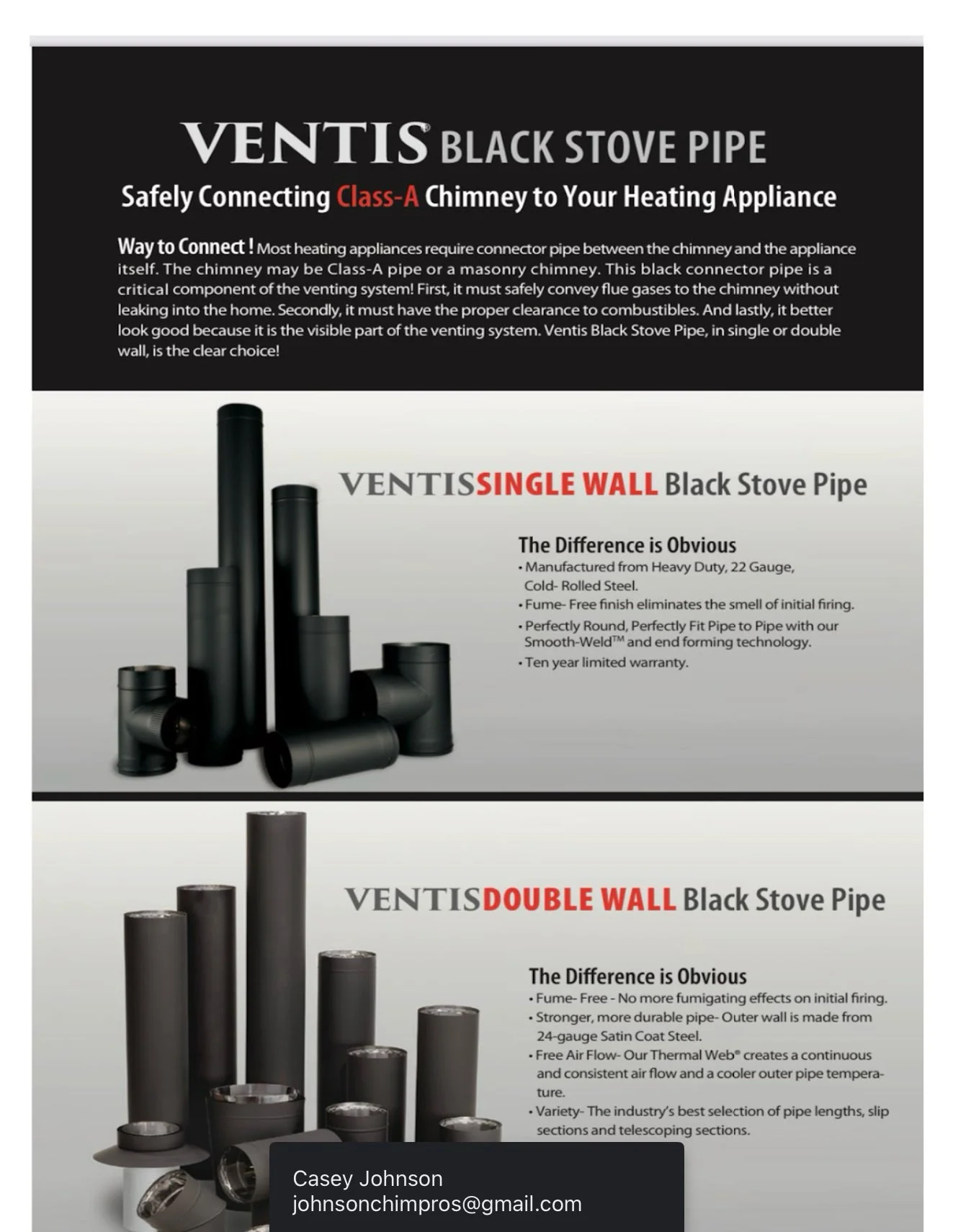 Ventis Black Stove Pipe Also manufactured in Pennsylvania, high quality, heavy gauge stove pipe with formed and smooth joints. This is the best replacement for outdated thinner walled stove pipe.